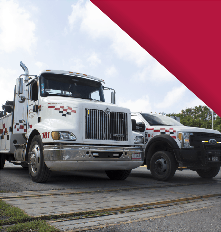 Para el salvamento y traslado de vehículos de gran tamaño: Camiones, Rabones, Tortons, Pipas y Tracto camiones con uno o dos remolques.